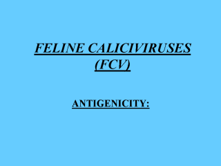 | Considered to be a single serotype but strains form an antigenic mosaic reacting with other strains to different degrees. Some show lack of cross-protection. FCV-F9 reference strain broadly cross-reactive. |