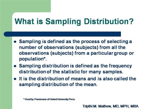 Let’s first define what is sampling distribution, then we will look at some features, statistical characteristics, later do some exercises on sampling distribution and conclude with some of its applications. |