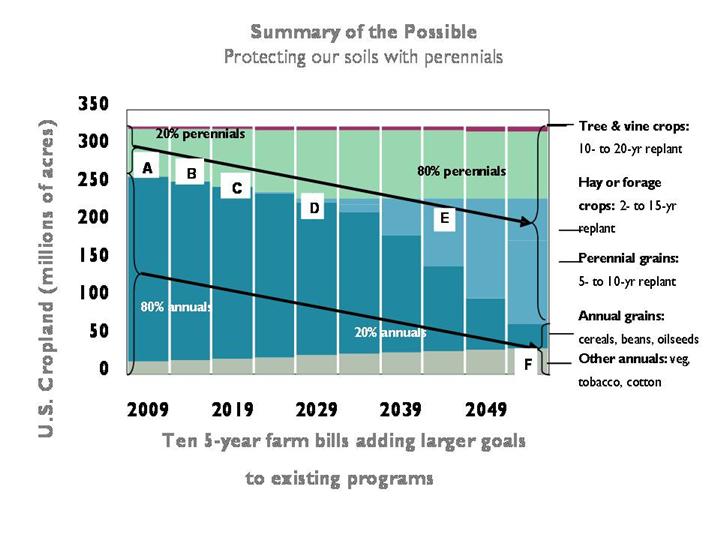 Protecting our soil with perennials: national acreage goals Half a century of concerted investment in research, education and incentives to conserve soil with deep-rooted, long-lived perennial crops could increase the protected acreage from 20 to 80 percent.