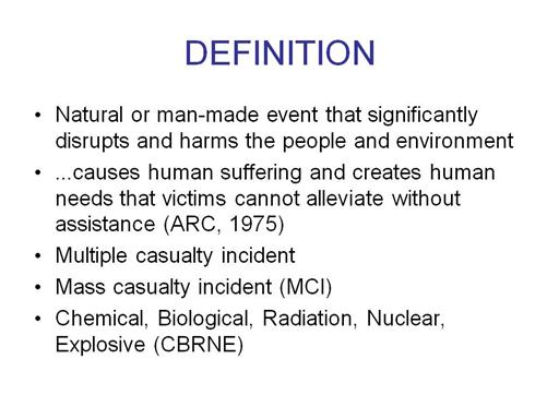 MCE Mass casualty event NBC Nuclear, biological, chemical agents WMD Weapons of mass destruction |