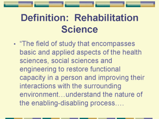 | Institute of Medicine. 1997. Enabling America: Assessing the Role of Rehabilitation Science and Engineering. Washington, D.C.: National Academy of Science. p. 5. |