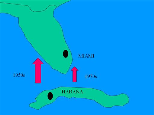 Hay dos olas de migración de Cuba a Miami. En los 50’s fueron principalmente nativos hispanos que fueron a los EUA por la revolución y en los 70’s fueron principalmente de ascendencia Africana, prisioneros en Cuba. Así, las razones políticas, también juegan un rol importante. |