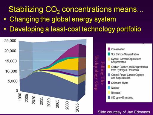 Stabilizing concentrations of greenhouse gases in the atmosphere requires fundamental change in the energy system. · Energy is central to the climate change issue. Carbon dioxide emissions from the production and consumption of fossil fuels are the largest contributor to human emissions of greenhouse gases. Fossil fuel resources are abundant, and, if used in conjunction with present energy technology, have the potential to increase the concentrations of greenhouse gases in the atmosphere substantially. [TW1] · If present trends continue, carbon dioxide emissions from energy will continue to grow. The influences of future population growth and economic development on the demand for energy services are likely to exceed currently projected improvements in energy intensity and the ongoing transition to less carbon-intensive fuels. However, trends are not destiny—a global technology strategy could help change the present course. · In order to stabilize concentrations of greenhouse gases in the atmosphere, global carbon emissions must peak during the 21st century and then decline indefinitely. This can occur only if lower carbon-emitting technologies are deployed worldwide.