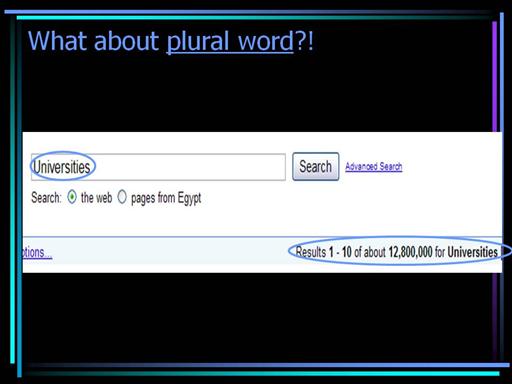 Singular word [University]: When you'll search for singular word you'll find millions of results (Why?)