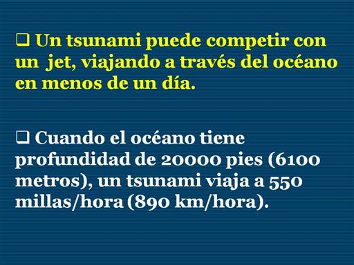 en aguas profundas, un tsunami viajará a elevadas velocidades y a