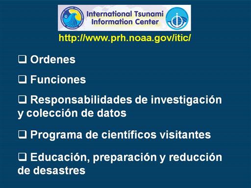 apoyo de estados miembros y UNESCO/IOC, ITIC organiza y conduce mesas