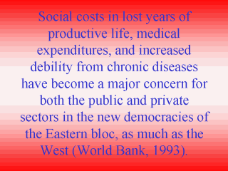 | The crises in national health policies have arisen in both market- and centrally planned economies. The fulcrum of policy goals rested on relating population health as a human right to promoting quality of life and to the means for furthering economic objectives, without relinquishing consumer choice. |