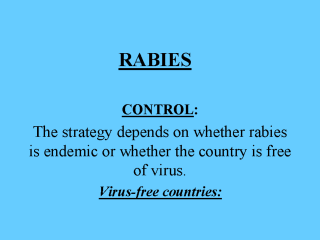 months quarantine of carnivores & ruminants (but cases have occurred after 6