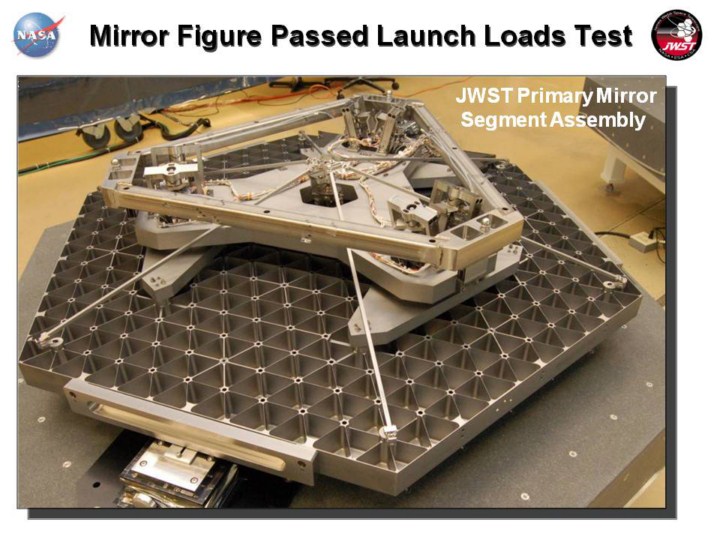 In the last year we have conducted vibration testing of a full primary mirror segment assembly shown here with flight mirror segment B1.