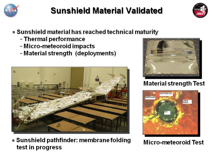 Progress with sunshield pathfinder model will be addressed by giampoli |