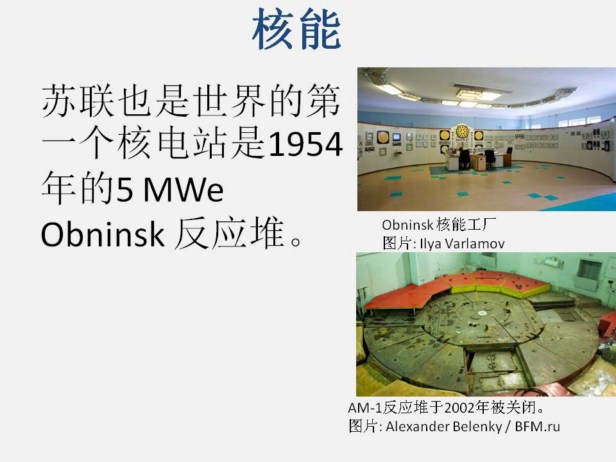 俄罗斯首个核电站,也是世界上首个核电站,是1954年5兆瓦的Obninsk 反应堆。俄国头两个商业级别的核电站开始于1963-1964年。到1971-73年,首个当今生产模式的核电站投入使用。到20世纪80年代中,俄罗斯有了25个运行中的核反应堆,但是其核工业有大量问题。切尔诺贝利事故催生了一个相关决议,此决议列于附录中。 在1986年切尔诺贝利事故到20世纪90年代中叶之间,俄罗斯只有一家核电站——4单位的Balakovo核电站投入使用,其中第三单位加入了Smolensk核电站。苏联解体后的经济改革意味着核能发展急缺资金,很多项目被搁浅。但是到90年代后期,俄罗斯的核反应堆开始出口到伊朗、中国和印度,俄罗斯搁浅的国内建设项目开始随着资金的许可而逐渐恢复。 约2000个核电建设得以恢复,Rostov-1(先在为Volgodonsk-1)——首个延迟单元,开始于2001年投入使用,已为电网提供210亿瓦电。这大大提高了俄罗斯核工业的士气。2004年又新建了Kalinin-3核电站。 到2006年,俄罗斯政府发展核能的决心已非常坚定,俄罗斯计划每年增加20-30亿瓦,一直到2030年。此外还打算出口核电厂以满足全球约3000亿瓦的新核能需求。 2010年2月,俄罗斯政府通过了一项联邦目标项目,旨在为基于快速反应堆的核能工业提供一个全新的技术平台。俄罗斯原子能公司到2050年的长期策略包括转变为具有封闭燃料循环,采用快速反应堆的安全核电厂。化石燃料发电将逐渐退出发电领域。http://www.world-nuclear.org/info/inf45.html |