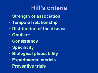 distinguish cause from simple association several factors need to be considered. Hill’s