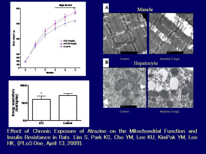 We fed rats with atrazine and high fat diet and succeeded in making them obese. These rats showed dysfunctional mitochondria in liver and muscle, and animals were rather inactive. This data shows for the first time mitochondrial dysfunction lead to inactivity in animal..Animals did not eat more, as a matter of fact. |
