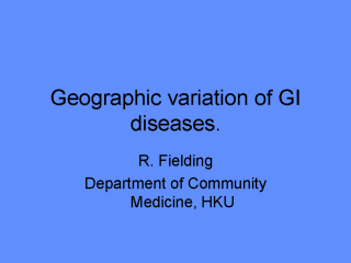 | Synopsis: This lecture considers some of the variation in gastro-intestinal diseases (GIDs) that are geographically detectable. It considers what factors might account for geographic changes in the patterns of GIDs. |