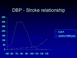 of stroke rises increasingly steeply and only a minority of patients would have a DBP of
