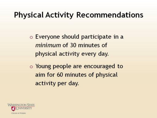 -Important to remember these are minimum guidelines. The more time involved in physical activities the greater the health benefits.