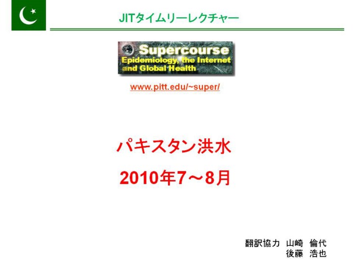 この教育資料は、世界災害医療ネットワークGlobal Health Disaster Network (GHDN)より、2010年のパキスタン洪水被災者にささげられたものです。