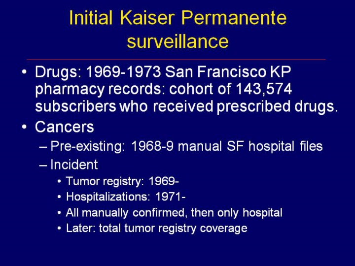 We started by reviewing all possible cancer cases in the cohort and found that those recorded in the tumor registry were quite accurate. We then reviewed only the hospital records until complete tumor registry coverage was available. |