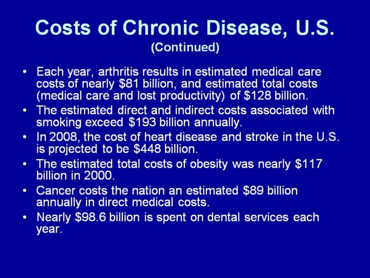 Each year, arthritis results in estimated medical care costs of nearly $81 billion, and estimated total costs (medical care and lost productivity) of $128 billion.