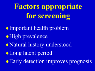 screening. The disease or the risk factor appropriate for screening should be serious,