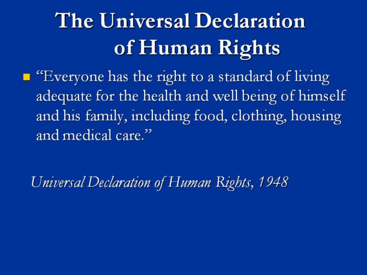 The idea that health is a human right was articulated in the United Nation’s Universal Declaration of Human Rights, created over 50 years ago at the inception of the organization. This idea is of pivotal importance in the development of the science of global health. Medical, public health, and nursing students need to be aware of the impact they can make on the global health in the future.