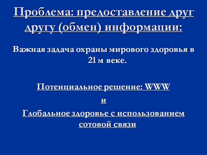 Когда в 1990 е годы в нашу жизнь вошел интернет, мы думали, что это роскошь, доступная немногим людям. Сейчас в 2010 году интернет стал всеобщей необходимостью и распространился в большинстве развитых и развивающихся стран. Для клинической медицины интернет становится столь же важным, как стетоскоп.