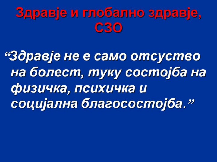 СЗО ја објави класичната дефиниција за Здравје, што е значајно за унапредувањето на здравјето во нашите и во земјите и ширум светот. |
