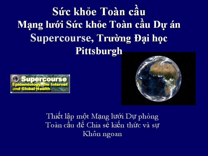 Bài giảng này được đ́êu phối thông qua Dự án Supercourse của về Mạng lưới Y tế Toàn cầu, được khởi xướng tại Khoa Dịch tể học, Trường Đại học Pittsburgh.