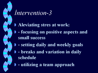 | Much can be done aleviating stress at work. Setting daily and weekly goals gives sense of accomplishement. Utilizing a team approach to pateint care can decreases counterproductive competitiveness. A team approach helps saving time. Physicians can increase mastery and control by enhancing their knowledge base. This can be done by having more time to read and visit educational meetings. |