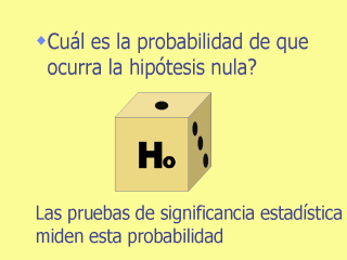 Las pruebas de significancia estadística sirven para medir la probabilidad de que ocurra la hipótesis nula, o lo que es lo mismo que las diferencias se deban al azar (QUE NO EXISTAN DIFERENCIAS).