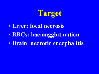 | RVF virus is cytopathic and replicates to high titre. It is thought that after infection, the virus moves from the skin to draining lymph nodes, where it replicates. Efferent lymphatics spread the virus throughout the body. The red blood cells (RBCs) and the liver are invaded. The virus may also cross the blood-brain barrier and infect neurons and glia. |