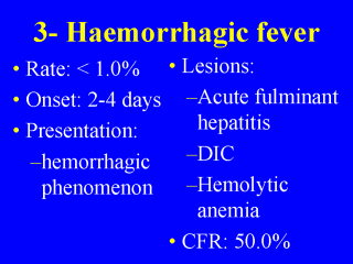 haemorrhagic fever in less than 1.0% of RVF cases. Two to four days after the onset of