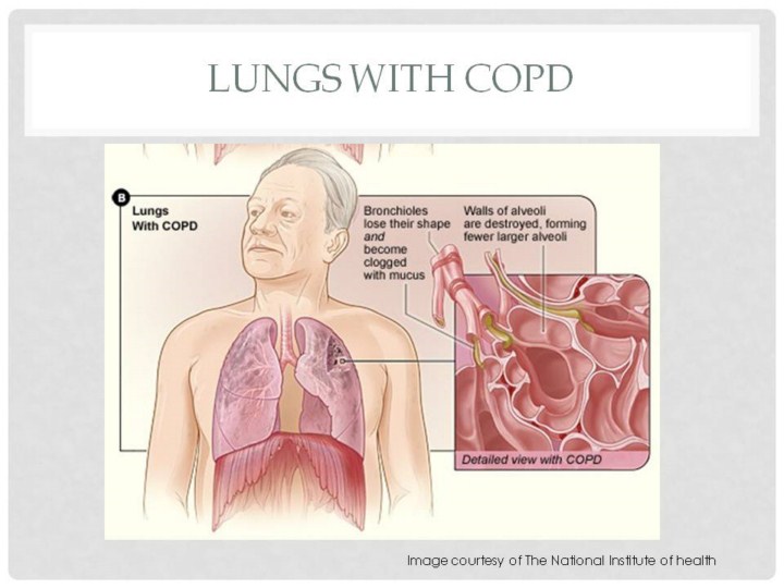 In COPD, less air flows in and out of the airways because of one or more of the following: