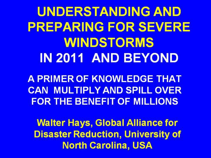DISASTER-RISK REDUCTION FOR SEVERE WINDSTORMS. Part I