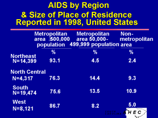 Key points: - Percent of AIDS cases by region and size - Incidence - Regional differences - Urban-rural differences |