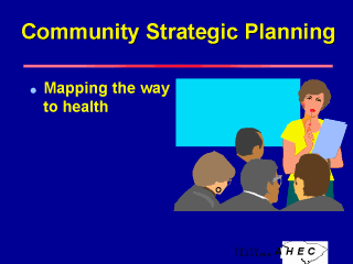 In previous slides we have encouraged students to more broadly define health and community, to listen and learn, and to think outside of traditional boundaries for locating leaders and assets for improving health. We have introduced them to the Healthy Communities Movement. Now we will discuss with them how they can help a community plan for health in a strategic manner. |