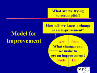 This is a simple tool for constructing a strategic plan. The Langley, Nolan and Nolan Model for Improvement offers an efficient and practical method to foster improvement. Developed in a three year interdisciplinary collaborative to improve health professions education directed by the Institute for Health Care Improvement, this model can be applied to community, professional, and individual improvements. It has been used by: -communities to plan strategically for health improvement Student Reading: The Foundation for Improvement, Langley, Nolan, and Nolan. |