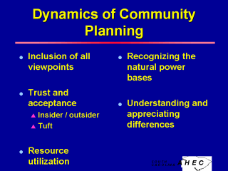 | Just as these are essential elements of successful efforts to build healthy communities, they are essential to strategic planning. The interplay of these creates the dynamic for success. |