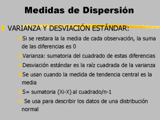 - Varianza: sumatoria del cuadrado de estas diferencias