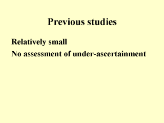 prevalence, age and degree of impairment. Also the methodology of these studies did not allow any estimation of the degree of under-ascertainment, i.e. the number of children not included in the study. |
