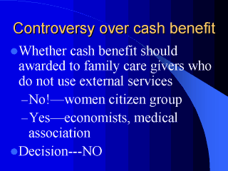 deliberate debate, Japan decided not to provide cash benefit to family care givers.