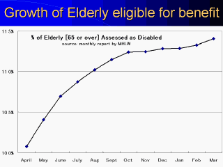 | The less than expected disbursement means that there has not been severe shortage of services and this was mainly because not many people applied for the benefit. Since the system was so new to many, most people might have taken a "wait and see" attitude. As a proof, the percent of eligible recipients gradually increased in the latter half of the year. |