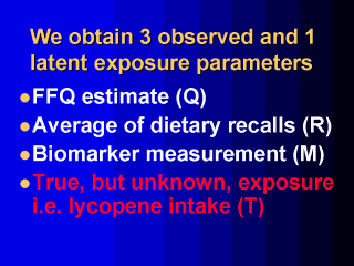 ‘true’ but sometimes unknown (latent) value of the exposure e.g. true lycopene intake.