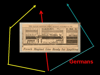 | In the late 1930s the French developed the Maginot line of defense against the Germans. This was a heavy, fortress system. The Germans nimbly went around the system and conquered France within days. |
