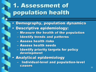 and assess the population’s health risks and health needs (a topic that our discipline