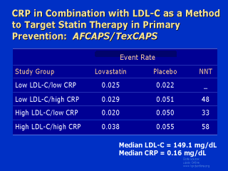 of 149 mg/dL had a clear benefit from lovastatin regardless of their CRP level; the number
