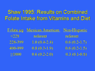 protective effect from daily folate intake (>1mg) in non-Hispanic whites was double