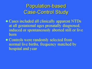 identified at birth or prenatally between January 1995 and May 2000 - We identified control women from residents of the study area who had normal births during the same time period - Subjects were approached about study enrollment either prenatally or in the hospital at the time of delivery or pregnancy termination |