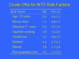 stillbirth, and obesity were strong risk factors among Mexican Americans - The risk of NTD was comparable between US-born and Mexico-born women |