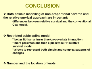 spline functions is more parsimonious than a piecewise PH relative survival model and